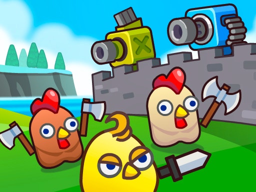 La révolte des poulets vient de commencer dans le monde entier. Ils veulent prendre le contrôle du monde et si vous ne défendez pas votre pays avec les canons, vos terres seront sous le contrôle de ces poulets fous. Ils n'ont pas peur et veulent juste conquérir. Vous pouvez créer des tours de canons si vous avez suffisamment de pièces. En détruisant les poulets soldats, vous pouvez gagner des pièces. Chaque fois que vous créez une tour, elle est de niveau 1. Vous pouvez augmenter le niveau des tours en combinant deux tours de même niveau. Veillez à augmenter la puissance de votre mur.